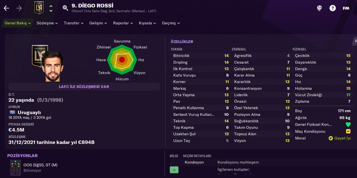 SPE ATT DEF TEC PHY MEN. Der 170 Meter große Offensivakteur Rossi gehörte seit 2011 der Nachwuchsabteilung von Peñarol Montevideo an. Diego Rossi profile in Football Manager 2021.